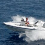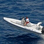 This is because the boat boasts a deep V hull featuring  a steep bow edge (50ο) with a pointy nose and sharp deadrise (24ο) which is primarily designed for racing but is able to perform very efficiently in the rough sea offering a very good level of damping. Two big and wide longitudinal stringers support the hull structure all along giving it more rigidity when facing hard conditions in the sea or at high speeds.