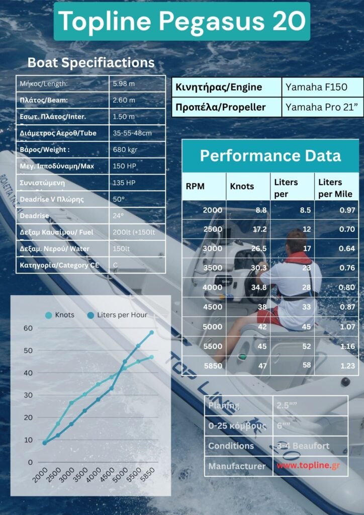 The Topline Pegasus 20 is not a new model that needs any form of campaign to be introduced in the market. On contrary, is a well known and proven Rib with impressive performance and seakeeping attitude. Why then I dedicate this post to this model has to do with the necessity to redefine our wants and needs towards the amazing possibilities that some small medium boats can offer us meaning a lot of fun within the limits of an affordable budget.